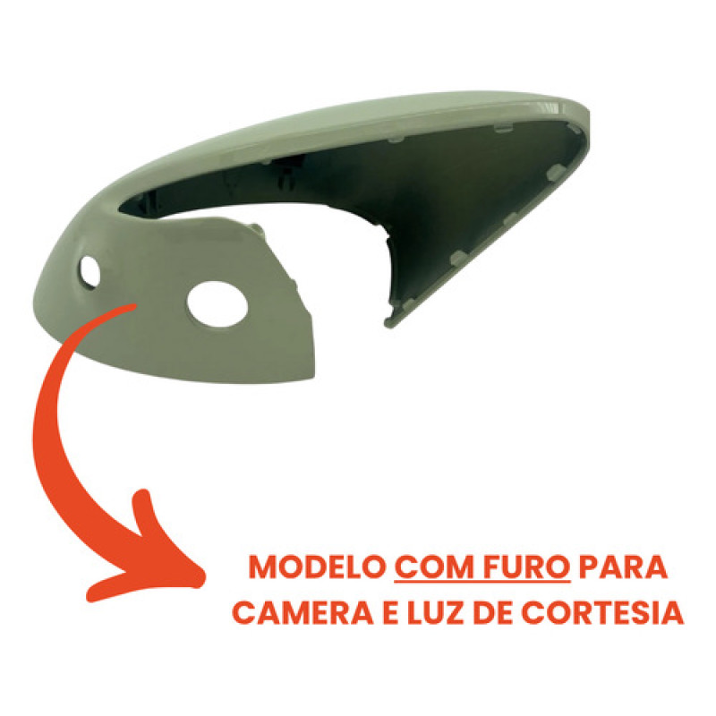 • Capa do retrovisor para MODELO COM FURO PARA CAMERA E LUZ DE CORTESIA (lampada na parte debaixo do retrovisor que ilumina na volta do veículo)
