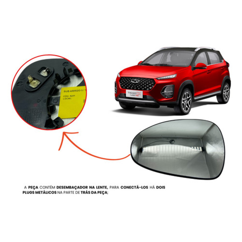 Lente Espelho Retrovisor Chery Tiggo 3x Motorista Esquerdo